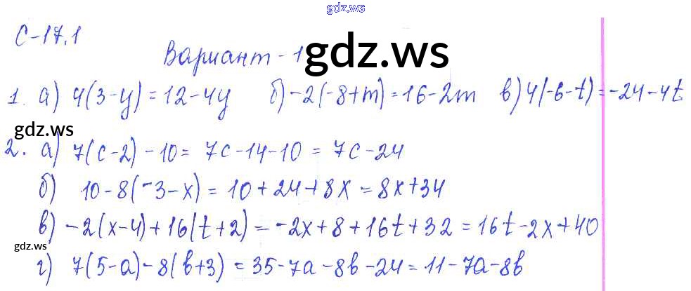 Готовый и полный ответ к 1. Варианты СР-17 - Математике 6 класс Зубарева Самостоятельные работы ФГОС