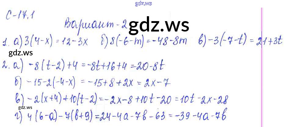 Готовый и полный ответ к 1. Варианты СР-17 - Математике 6 класс Зубарева Самостоятельные работы ФГОС