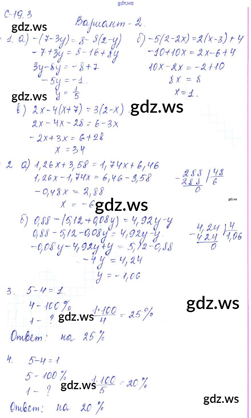 Готовый и полный ответ к 3. Варианты СР-19 - Математике 6 класс Зубарева Самостоятельные работы ФГОС