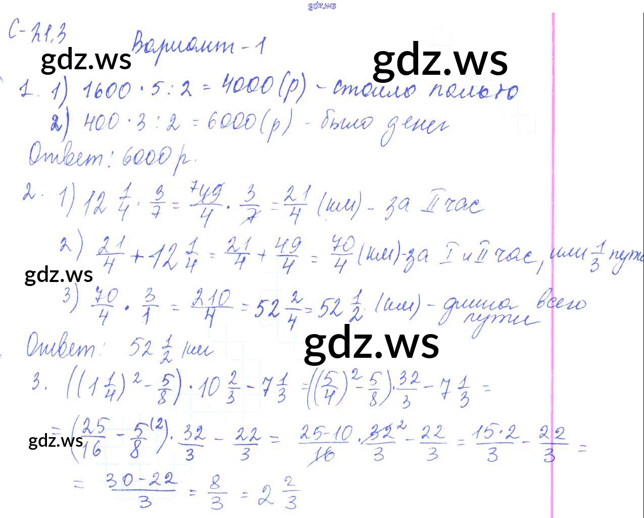 Готовый ответ 3. Варианты СР-21 - Математике 6 класс Зубарева Самостоятельные работы ФГОС