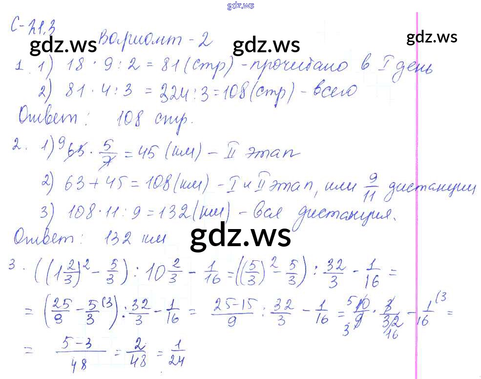 Готовый и полный ответ к 3. Варианты СР-21 - Математике 6 класс Зубарева Самостоятельные работы ФГОС