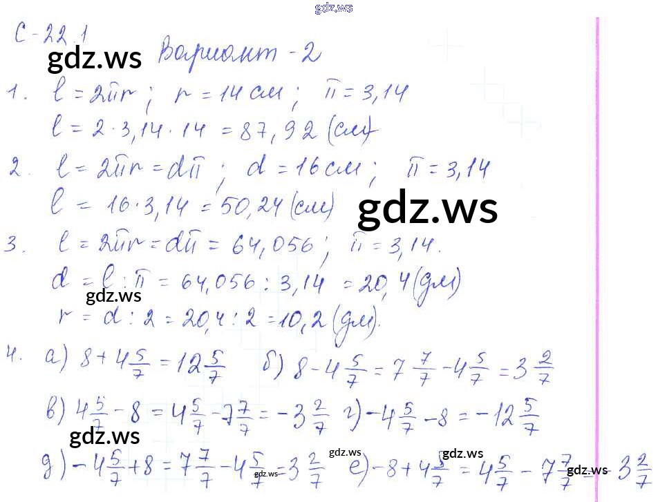 Готовый и полный ответ к 1. Варианты СР-22 - Математике 6 класс Зубарева Самостоятельные работы ФГОС