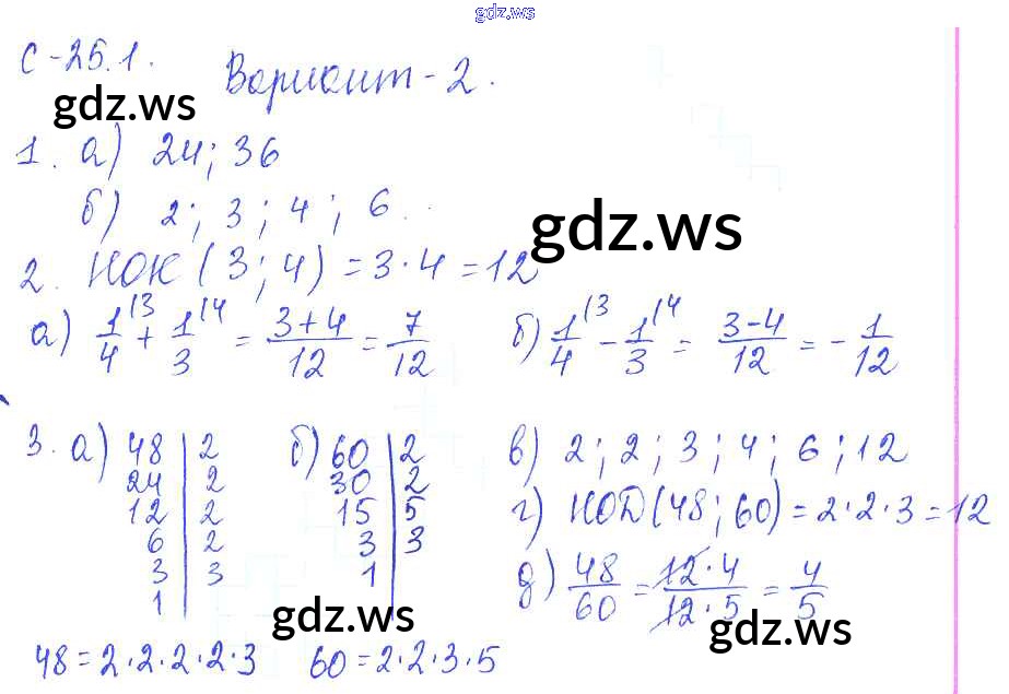 Готовый ответ 1. Варианты СР-25 - Математике 6 класс Зубарева Самостоятельные работы ФГОС