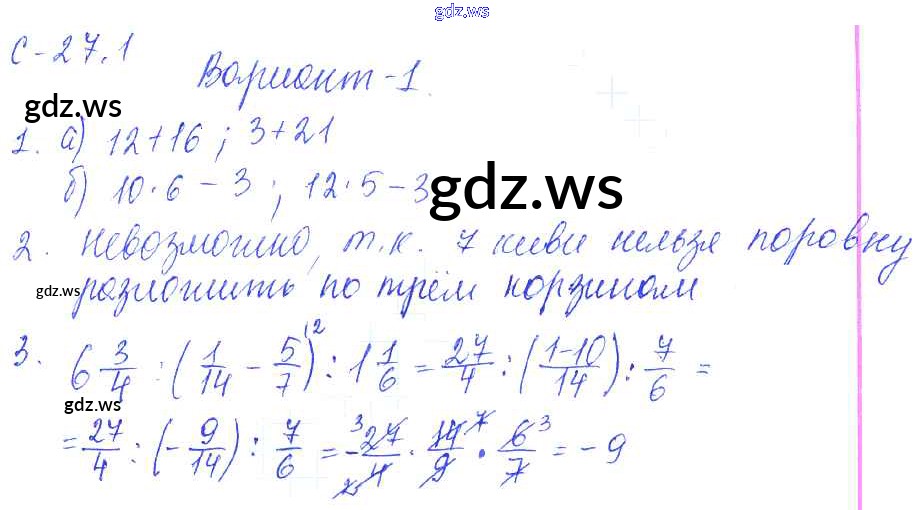 Готовый и полный ответ к 1. Варианты СР-27 - Математике 6 класс Зубарева Самостоятельные работы ФГОС