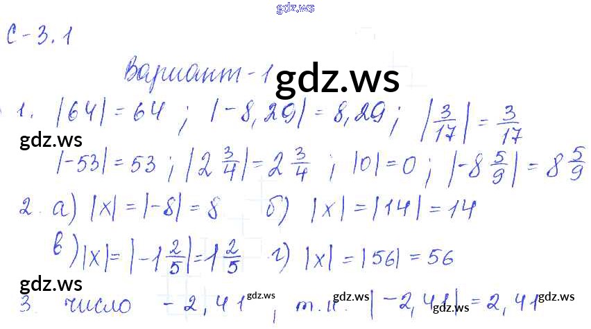 Готовый и полный ответ к 1. Варианты СР-3 - Математике 6 класс Зубарева Самостоятельные работы ФГОС