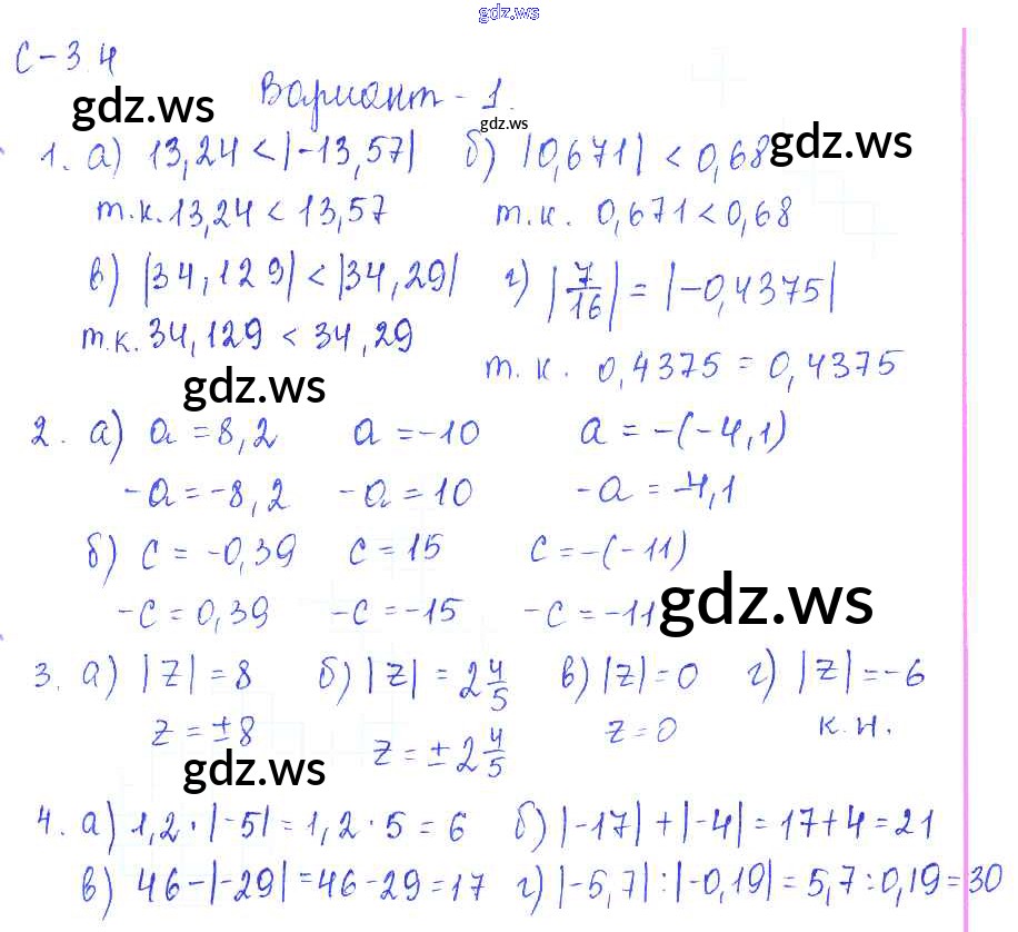 Готовый и полный ответ к 4. Варианты СР-3 - Математике 6 класс Зубарева Самостоятельные работы ФГОС