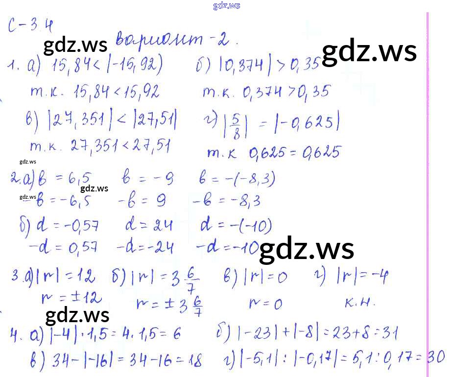 Готовый и полный ответ к 4. Варианты СР-3 - Математике 6 класс Зубарева Самостоятельные работы ФГОС