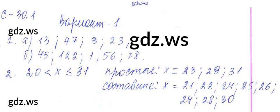 Готовый и полный ответ к 1. Варианты СР-30 - Математике 6 класс Зубарева Самостоятельные работы ФГОС