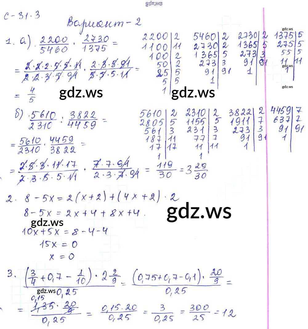 Готовый и полный ответ к 3. Варианты СР-31 - Математике 6 класс Зубарева Самостоятельные работы ФГОС