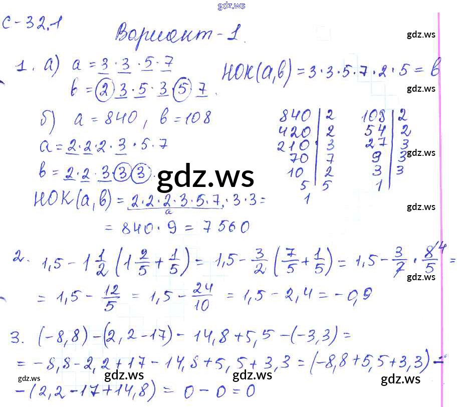 Готовый и полный ответ к 1. Варианты СР-32 - Математике 6 класс Зубарева Самостоятельные работы ФГОС