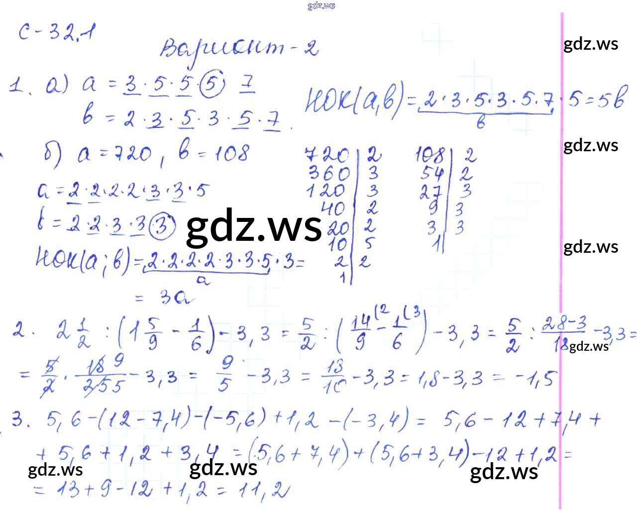 Готовый ответ 1. Варианты СР-32 - Математике 6 класс Зубарева Самостоятельные работы ФГОС