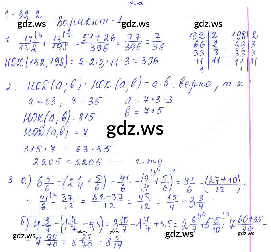 Готовый и полный ответ к 2. Варианты СР-32 - Математике 6 класс Зубарева Самостоятельные работы ФГОС