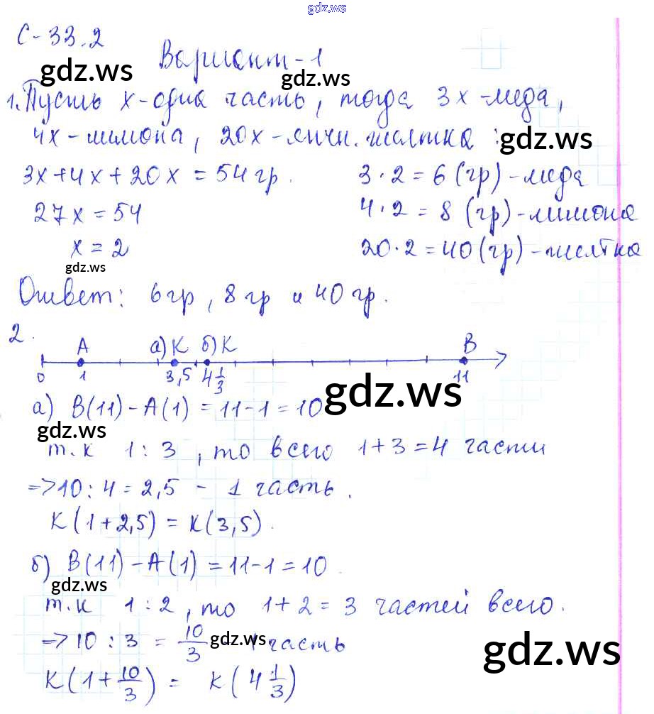 Готовый и полный ответ к 2. Варианты СР-33 - Математике 6 класс Зубарева Самостоятельные работы ФГОС