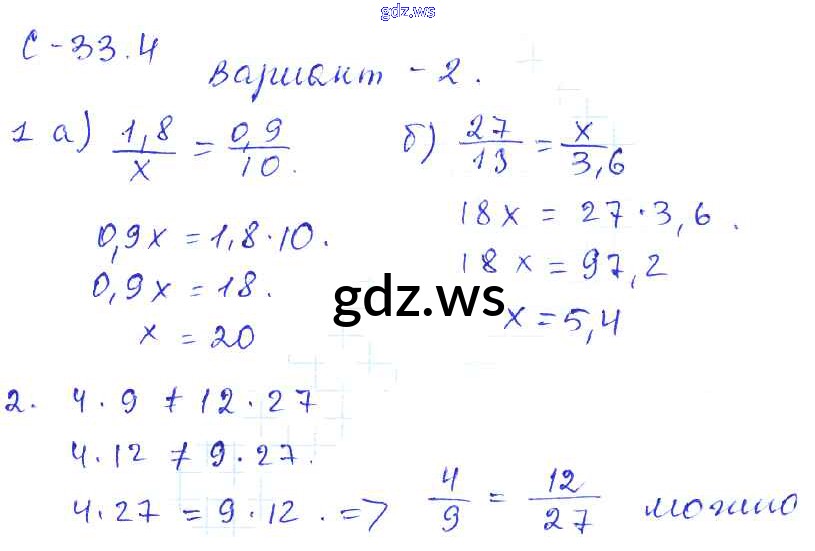 Готовый и полный ответ к 4. Варианты СР-33 - Математике 6 класс Зубарева Самостоятельные работы ФГОС