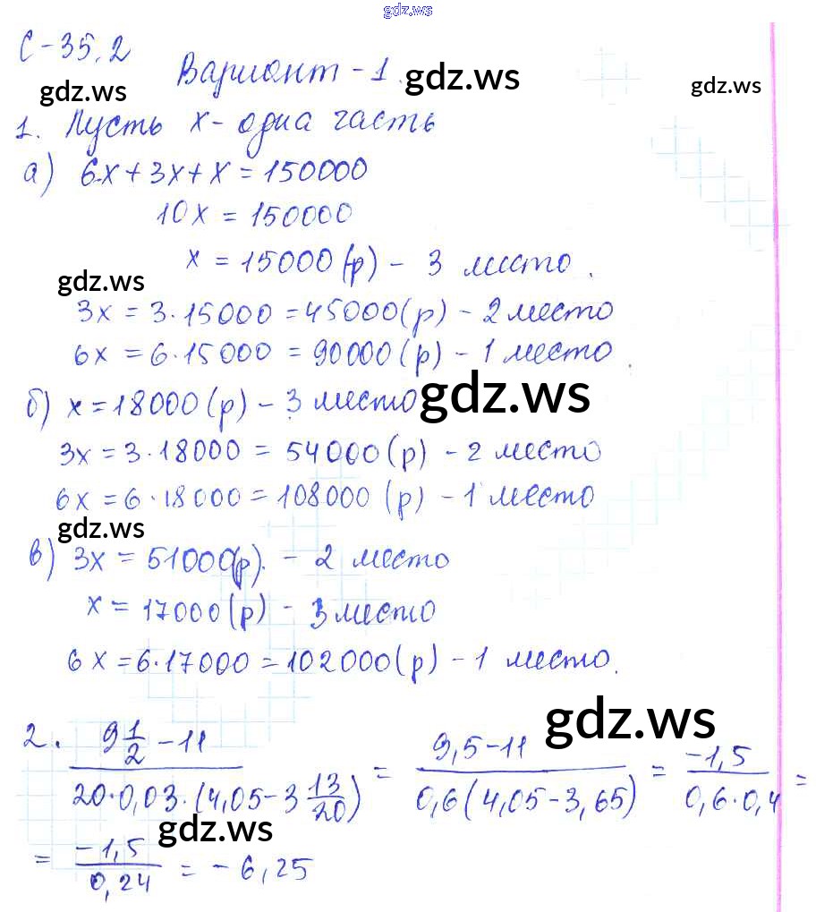 Готовый и полный ответ к 2. Варианты СР-35 - Математике 6 класс Зубарева Самостоятельные работы ФГОС