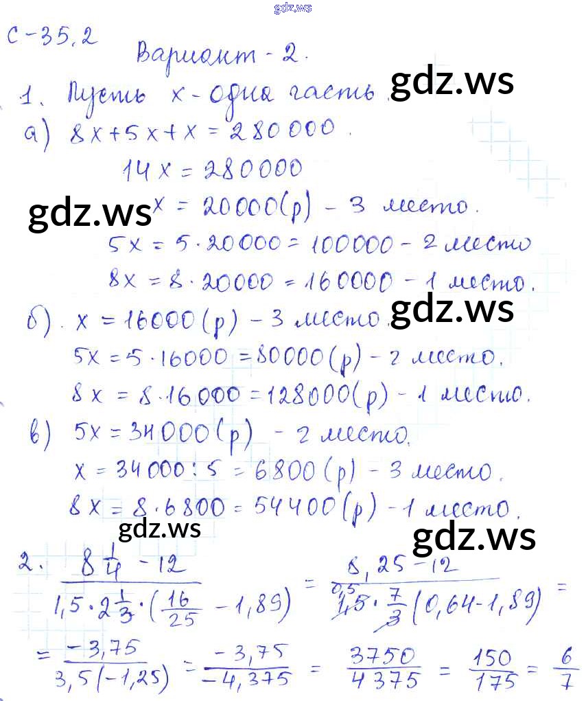Готовый и полный ответ к 2. Варианты СР-35 - Математике 6 класс Зубарева Самостоятельные работы ФГОС