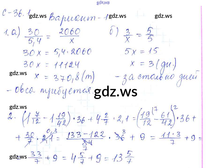 Готовый и полный ответ к 1. Варианты СР-36 - Математике 6 класс Зубарева Самостоятельные работы ФГОС