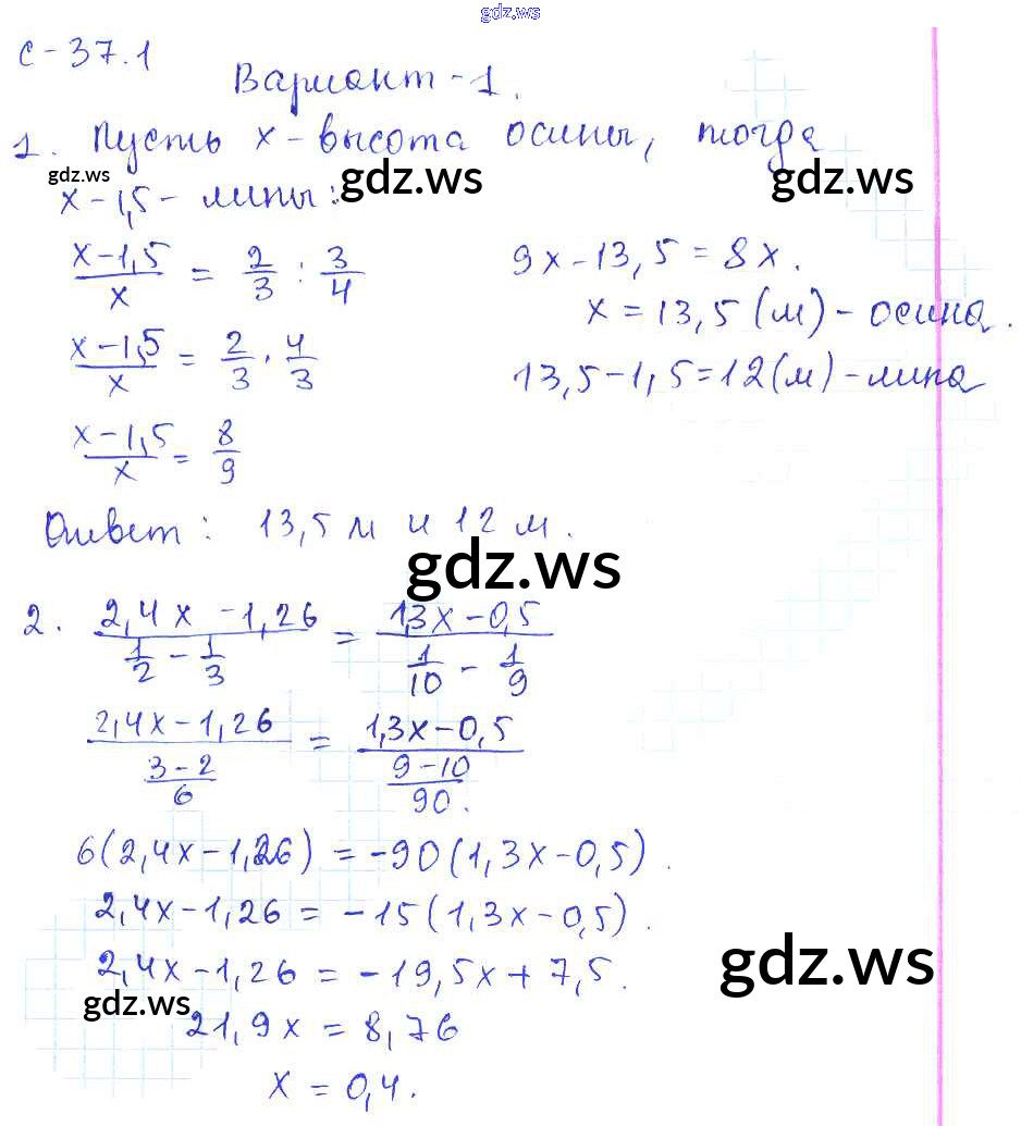 Готовый и полный ответ к 1. Варианты СР-37 - Математике 6 класс Зубарева Самостоятельные работы ФГОС