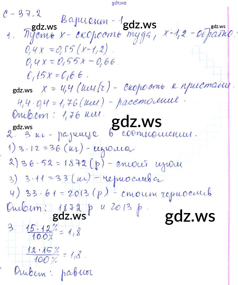 Готовый и полный ответ к 2. Варианты СР-37 - Математике 6 класс Зубарева Самостоятельные работы ФГОС