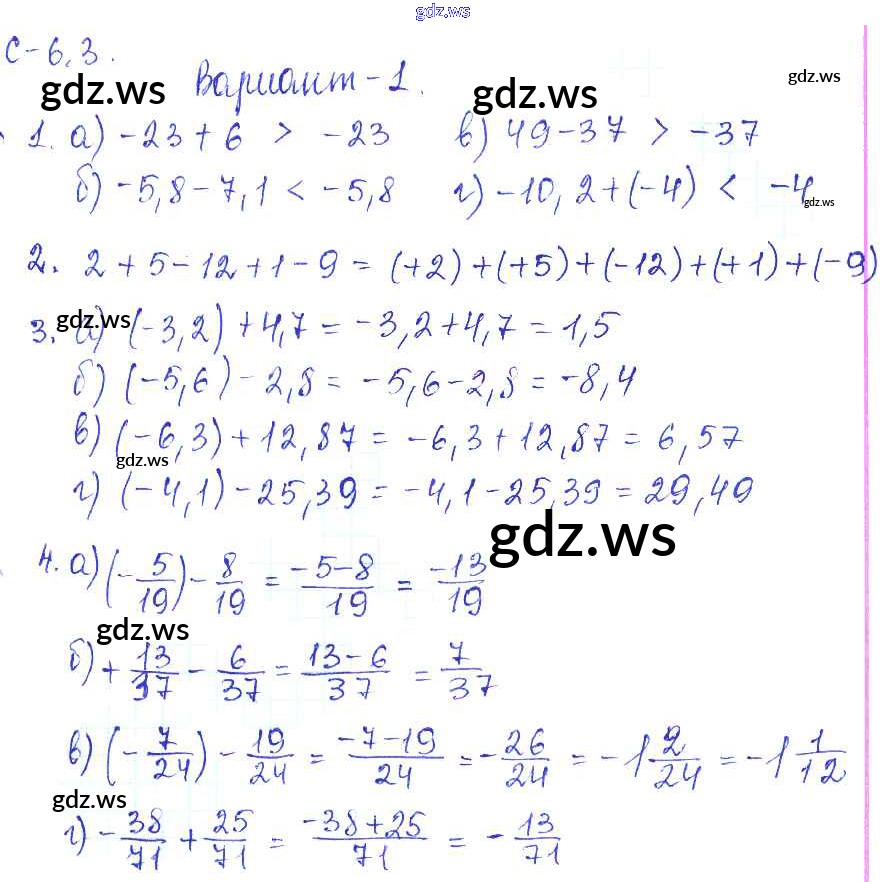 Готовый и полный ответ к 3. Варианты СР-6 - Математике 6 класс Зубарева Самостоятельные работы ФГОС