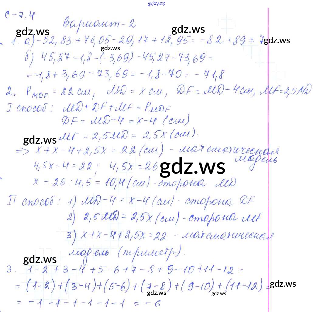 Готовый ответ 4. Варианты СР-7 - Математике 6 класс Зубарева Самостоятельные работы ФГОС