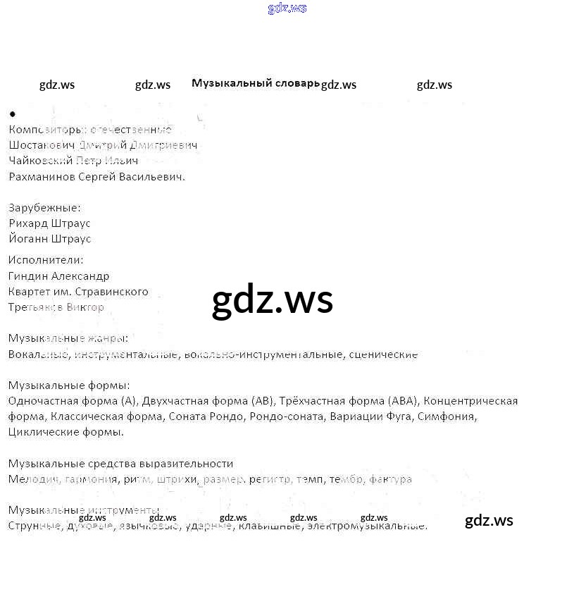 Готовый ответ Страницы - Музыке 6 класс Сергеева Творческая тетрадь ФГОС
