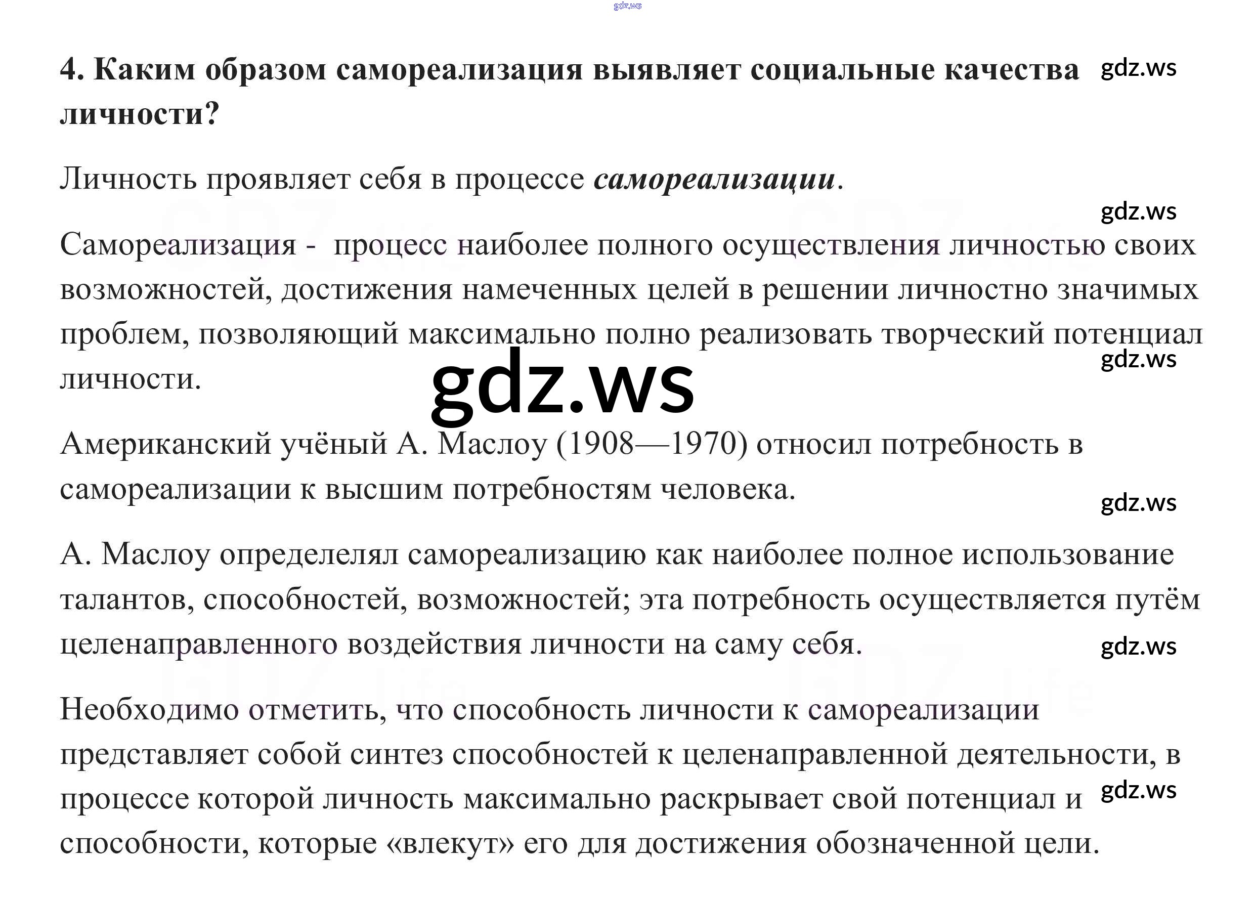 Готовый ответ Вопросы для самопроверки §4. Социальная сущность человека - Обществознанию 10 класс Боголюбов Учебник Базовый уровень ФГОС