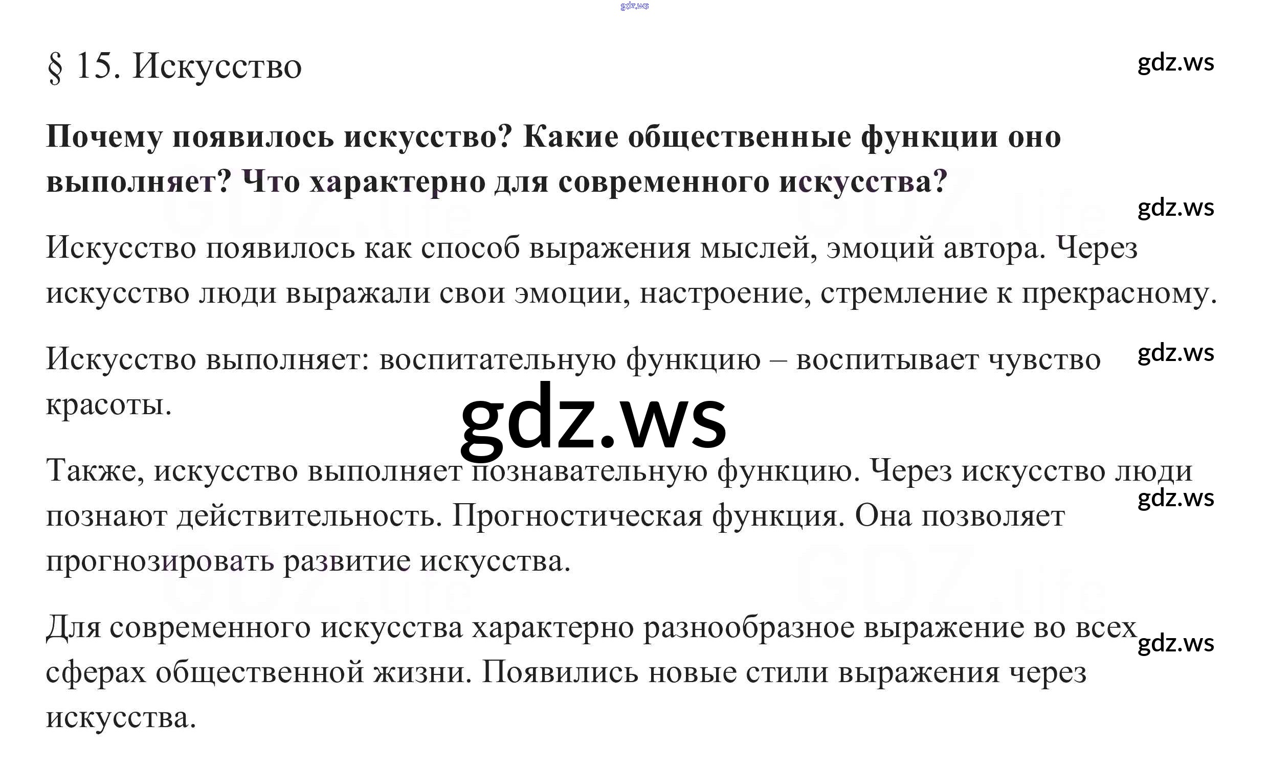 Готовый ответ В начале параграфа §15. Искусство - Обществознанию 10 класс Боголюбов Учебник Базовый уровень ФГОС