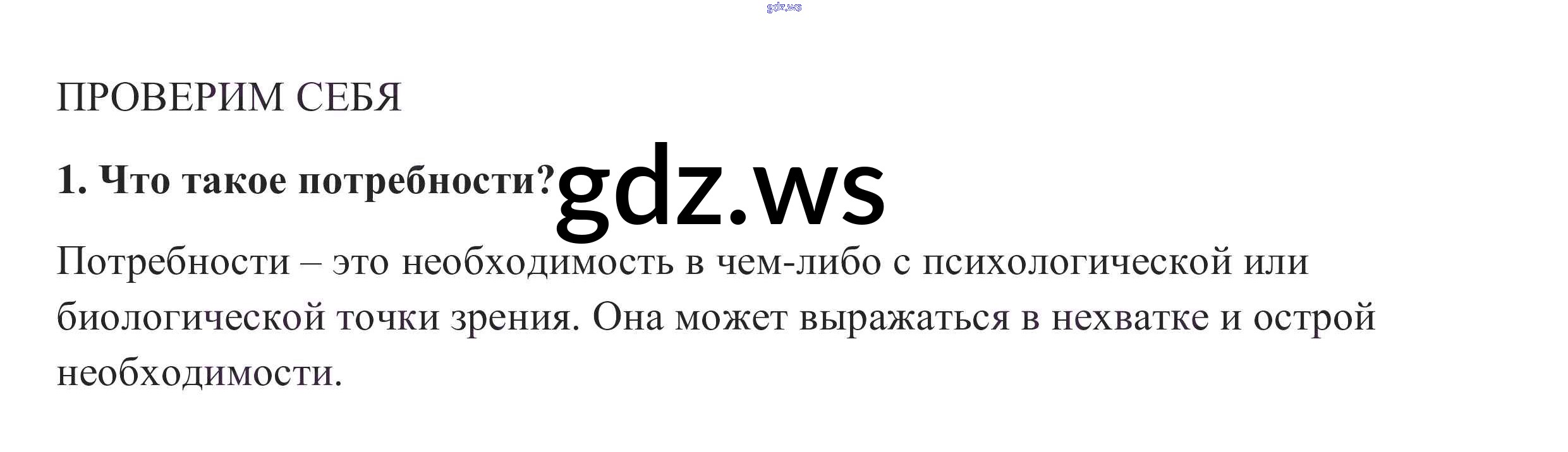 Готовый ответ Проверим себя §4. Потребности человека - Обществознанию 6 класс Боголюбов Учебник Академический школьный учебник ФГОС