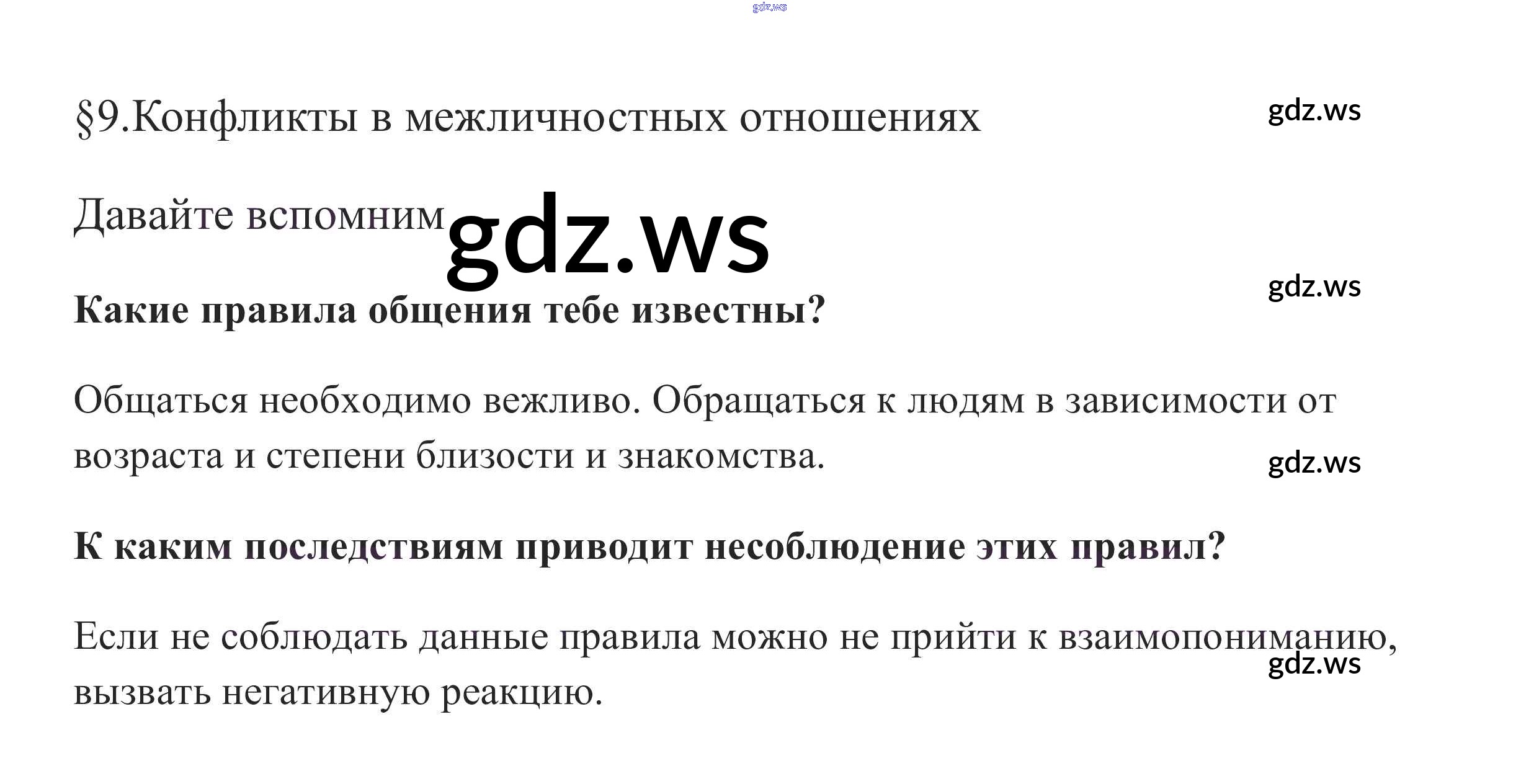 Готовый ответ Вспомним §9. Конфликты в межличностных отношениях - Обществознанию 6 класс Боголюбов Учебник Академический школьный учебник ФГОС