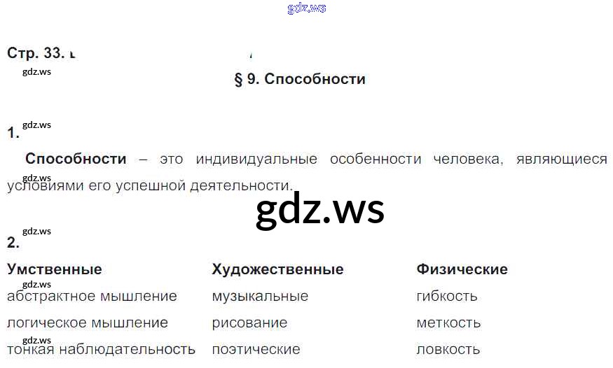 Готовый и полный ответ к § 9. Способности - Обществознанию 6 класс Соболева Рабочая тетрадь УМК ФГОС