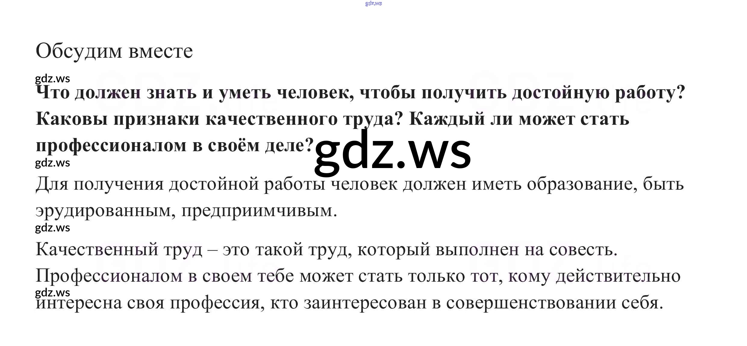 Готовый и полный ответ к Обсудим вместе §9. Мастерство работника - Обществознанию 7 класс Боголюбов Учебник Академический школьный учебник ФГОС