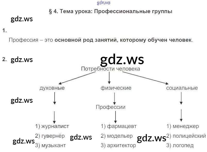 Готовый и полный ответ к § 4. Профессиональные группы - Обществознанию 7 класс Соболева Рабочая тетрадь Алгоритм успеха ФГОС