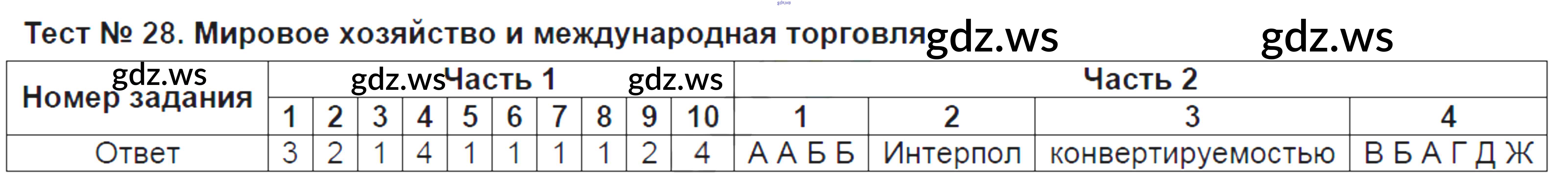 Тест №28. Мировое хозяйство и международная торговля
