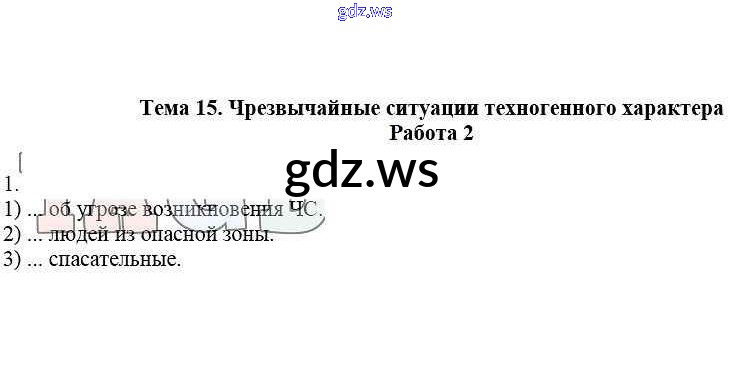Готовый и полный ответ к Работа 2 Тема 15. Чрезвычайные ситуации техногенного характера - ОБЖ 5 класс Демидов Рабочая тетрадь