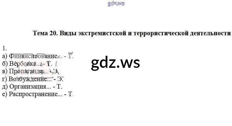 Готовый ответ Тема 20. Виды экстремистской и террористической деятельности - ОБЖ 5 класс Демидов Рабочая тетрадь
