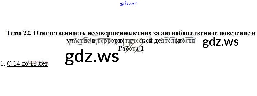 Готовый ответ Работа 1 Тема 22. Ответственность несовершеннолетних за антиобщественное поведение - ОБЖ 5 класс Демидов Рабочая тетрадь