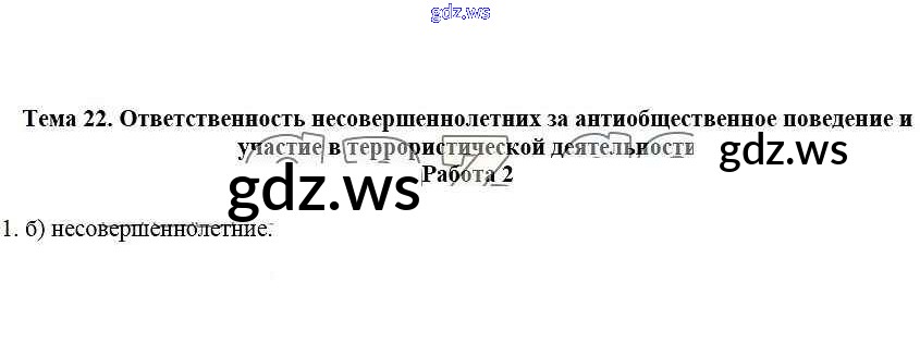Готовый и полный ответ к Работа 2 Тема 22. Ответственность несовершеннолетних за антиобщественное поведение - ОБЖ 5 класс Демидов Рабочая тетрадь