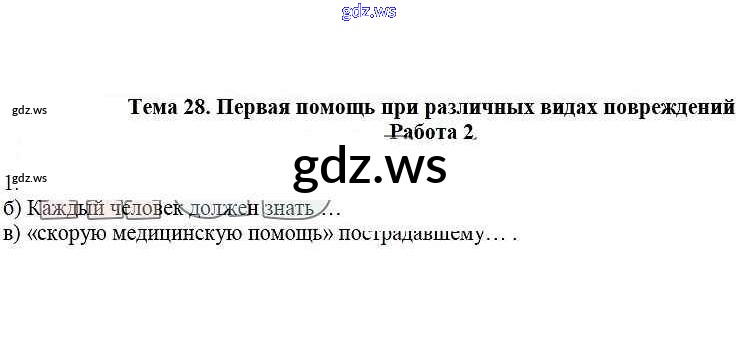 Готовый и полный ответ к Работа 2 Тема 28. Первая помощь при различных видах повреждений - ОБЖ 5 класс Демидов Рабочая тетрадь