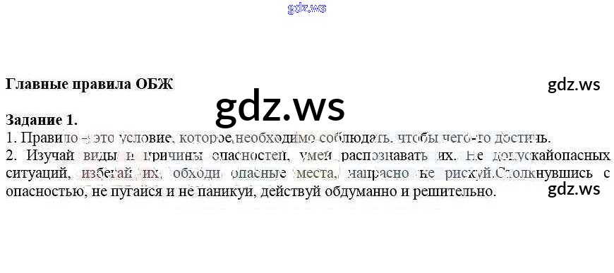 Готовый и полный ответ к 2. Главные правила ОБЖ - ОБЖ 5 класс Драновская Рабочая тетрадь ФГОС
