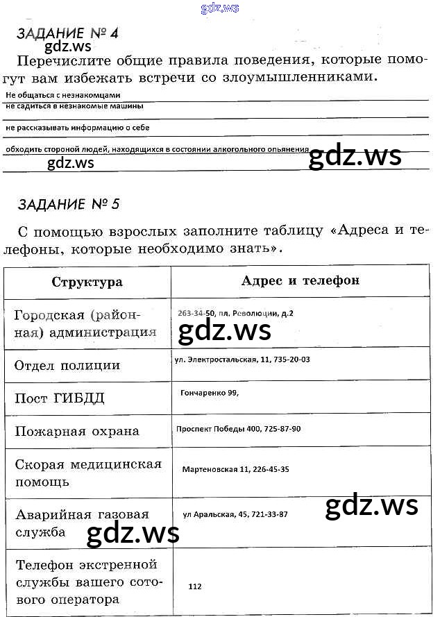 Готовый ответ Глава 1 - ОБЖ 5 класс Смирнов Рабочая тетрадь ФГОС