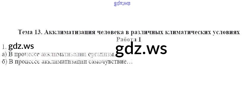 Готовый и полный ответ к Работа 1 Тема 13. Акклиматизация человека в различных климатических условиях - ОБЖ 6 класс Демидов Рабочая тетрадь
