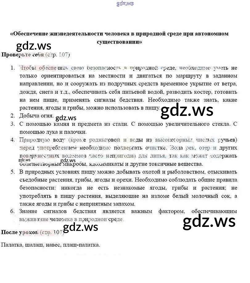 Готовый ответ Страницы - ОБЖ 6 класс Смирнов Учебник ФГОС