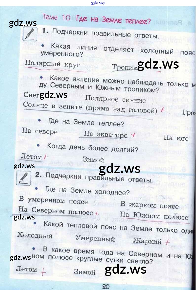 Готовый ответ Тема 10. Где на Земле теплее - Окружающему миру 2 класс Вахрушев Рабочая тетрадь Школа 2100 ФГОС