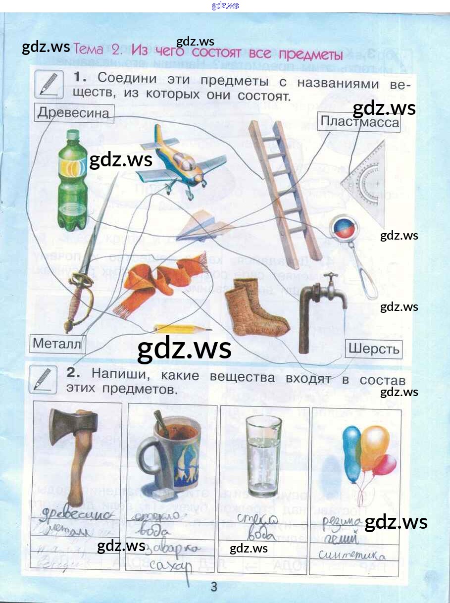 Готовый и полный ответ к Тема 2. Из чего состоят все предметы - Окружающему миру 2 класс Вахрушев Рабочая тетрадь Школа 2100 ФГОС