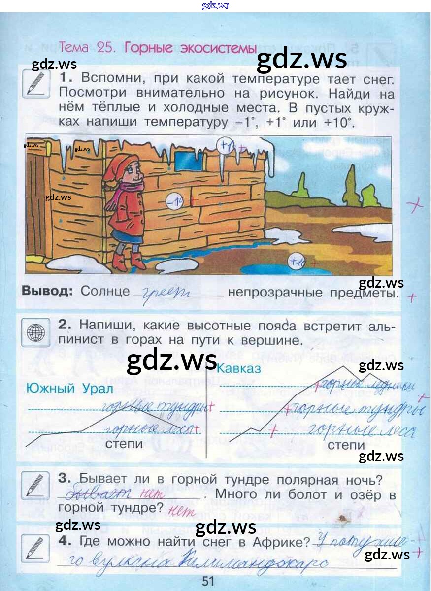 Готовый ответ Тема 25. Горные экосистемы - Окружающему миру 2 класс Вахрушев Рабочая тетрадь Школа 2100 ФГОС