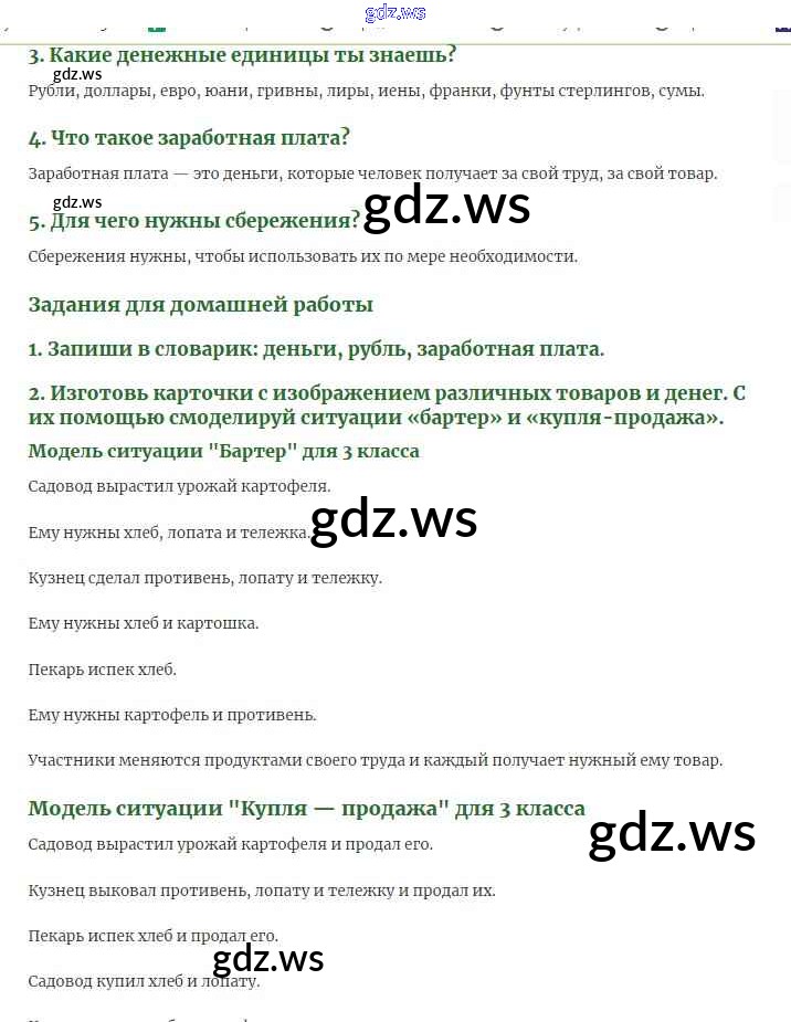 Готовый и полный ответ к Чему учит экономика Часть 2 - Окружающему миру 3 класс Плешаков Учебник Школа России ФГОС