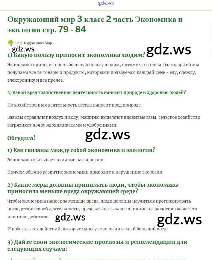 Готовый и полный ответ к Чему учит экономика Часть 2 - Окружающему миру 3 класс Плешаков Учебник Школа России ФГОС