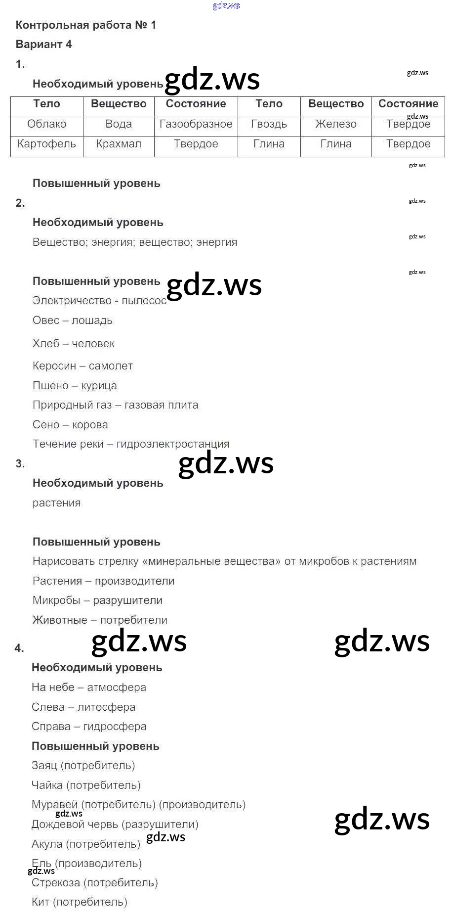 Готовый и полный ответ к КР №1 (варианты) - Окружающему миру 3 класс Вахрушев Проверочные и контрольные работы Школа 2100 ФГОС