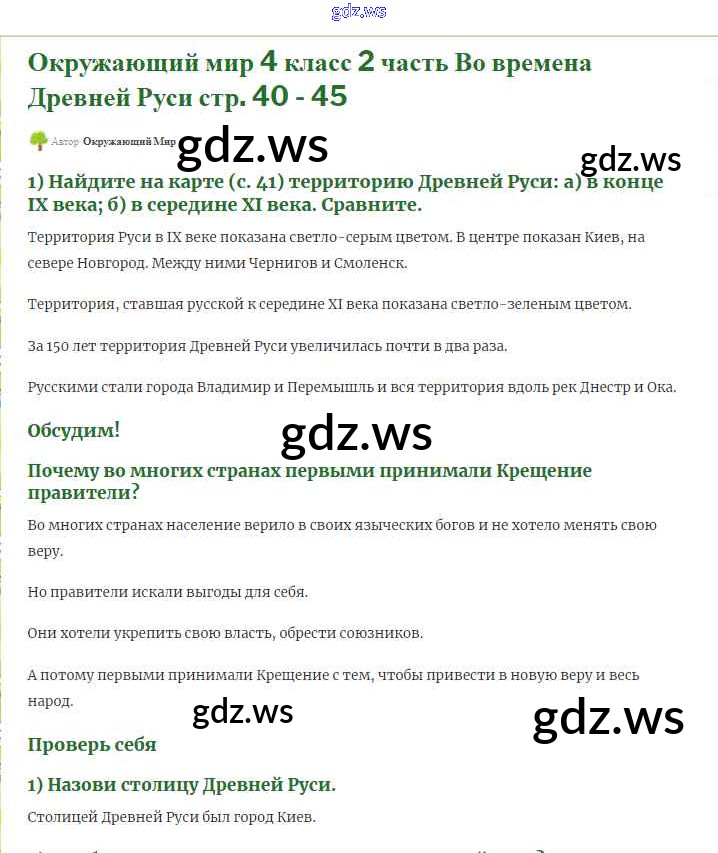 Готовый и полный ответ к Страницы истории России Часть 2 - Окружающему миру 4 класс Плешаков Учебник Школа России ФГОС
